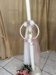 Η λαμπάδα βάπτισης συμβολίζει το ανέσπερο φως του Χριστού που λαμβάνει το παιδί με το μυστήριο, φωτίζοντάς τη νέα του πνευματική ζωή. Πέρα από τον ιερό της χαρακτήρα, αποτελεί ένα πανέμορφο, χειροποίητο αξεσουάρ που ολοκληρώνει το βαπτιστικό σύνολο και μένει ως ενθύμιο της ξεχωριστής αυτής ημέρας.